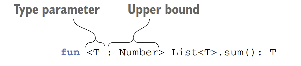 type paramter constraint는 클래스나 함수에 사용할 수 있는 타입 인자를 제한하는 기능이다. 예를 들어, 리스트에 있는 원소를 모두 더하는 함수가 있다고 가정하자. 이 함수는 List<Int>나 List<Double>에 사용될 수 있지만, List<String>에는 사용 불가능하다. 이를 표현하기 위해서 타입 파라미터는 숫자만 될 수 있다는 것을 명시해야 한다.