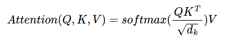 위의 그림만 보아서는 잘 이해가 가지 않으므로, attention의 계산 공식을 먼저 뜯어보도록 하자. Attention은 다음과 같은 계산 공식을 따른다. Attention을 구하기 위해서는 Q, K, V 값이 필요한데, 이는 각각 Query, Key, Value를 의미한다.