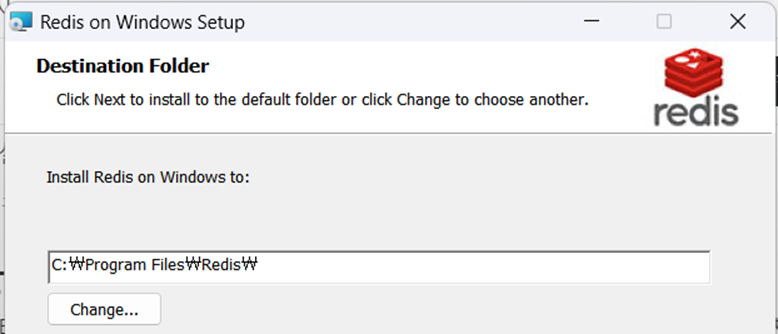 설치 프로그램을 실행해준다. 레디스 설치 경로는 기본 세팅으로 놔둔다.